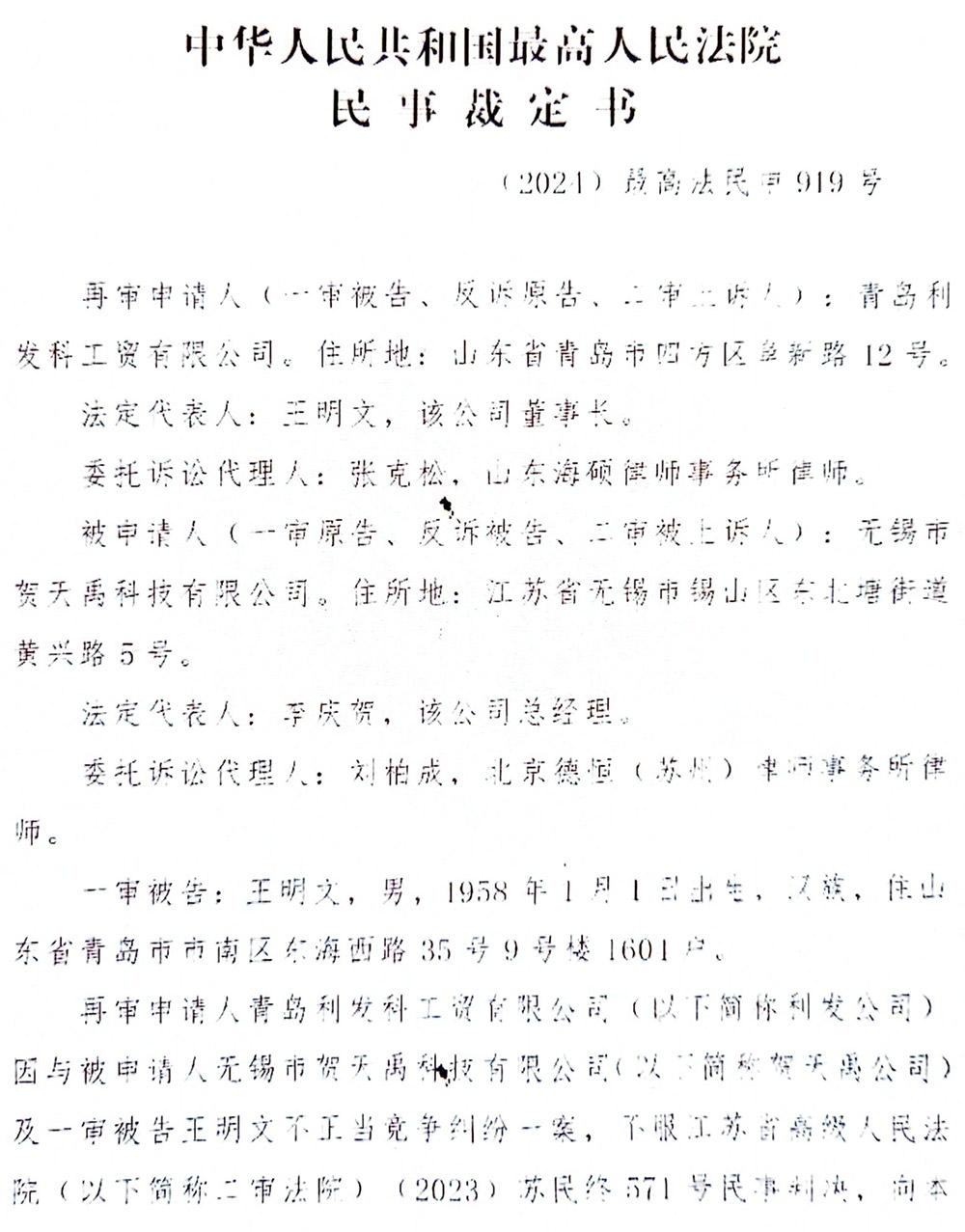 青島利發科工貿有限公司詆毀無錫市賀天禹科技有限公司不正當競爭一案,現審理、判決、執行終結!(詳見附件)